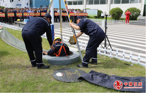 同时,活动现场开展了有限空间应急演练,演练分为两部分,第一部分为现场演示有限空间作业标准执行流程,第二部分为模拟一名员工在有限空间内作业时突然昏厥的应急处置及救援流程。经企业内各部门紧密配合,成功营救了被困人员,并对伤员进行了紧急救治。本次演练进一步提高了企业一线作业人员对事故报告流程和实际工作程序的熟悉度,有效预防、遏制中毒窒息等安全生产事故的发生,提高有限空间突发事故处置能力,防止盲目施救引发的安全事故,增强应急处置和实际操作能力。
