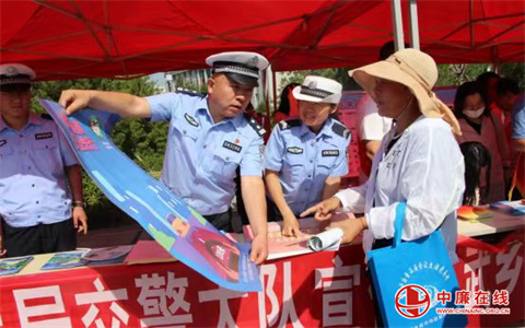 活动中,交警大队民辅警通过设置交通安全宣传咨询台、摆放宣传展板、发放宣传资料等形式,向广大群众宣传交通违法行为的危害和后果,引导群众要自觉遵守交通法规,并结合夏季道路交通特点,讲解夏季易发生的车辆问题、恶劣天气安全行车及应急处置等交通安全常识,让驾驶人时刻紧绷安全弦,牢固树立“生命至上”意识,呼吁广大群众自觉遵守交通法律法规,抛弃交通安全陋习,成为懂法律、守规矩的交通安全参与者。
