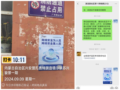 活动最后,社区网格员通过在居民群内转发国家网络安全宣传周海报、在小区张贴国家网络安全宣传周宣传海报、入户发放宣传手册等形式,对辖区居民群众进行网络安全相关法律法规的普及和宣传,同时针对防范电信网络诈骗、个人信息保护、网络安全防护等方面的知识进行现场解读,强化居民群众网络安全意识,提醒他们保护好个人信息,科学安全上网,引导居民自觉抵制不良信息和网络陷阱,共同维护网络安全。(郭晓梅)