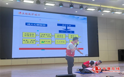 本次培训分为理论普及和实践操作两个环节。在理论环节,红十字会救护培训师陈杨羊着重讲解了心肺复苏术(CPR)的操作步骤和注意事项及自动体外除颤器(AED)的使用技巧,强调了急救的“黄金四分钟”和高质量心肺复苏的重要性。