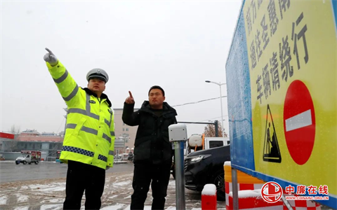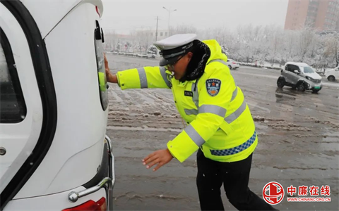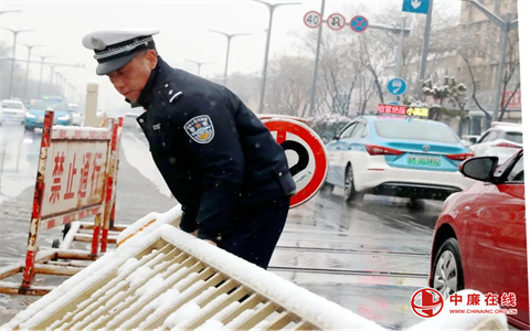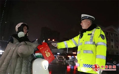 降雪期间,民警不畏严寒,坚守岗位,加强对辖区商超、农贸市场、主要交通路口重点巡逻值守力度,通过亮警灯、喇叭喊话等方式提醒过往车辆保持安全车距、减速慢行,同时积极开展雪天救援与应急服务,及时帮助群众脱困,为人民群众顺利返乡、欢度佳节创造良好的道路交通环境。