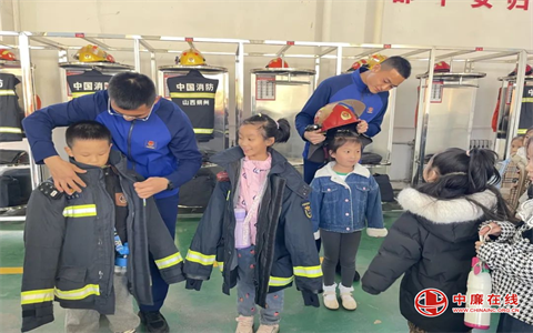 当他们兴奋地穿上战斗服,戴上头盔,仿佛自己也成了勇敢的消防员。小朋友们的欢呼声,充满了整个消防站。在“你问我答”环节,一件件特别的消防器材,引起了小朋友们很大的兴趣,不时拉着消防员们问这是什么,那又是什么……“你们的装备有多重呀?”大家你一句我一句,向消防员提出了很多想要了解的问题,他们一一耐心解答,为小朋友们讲解装备的名称、用途和使用方法,并拿出一些救生逃生器材教他们使用。各种专业的消防器材和装备让参观的同学们惊奇不已、大开眼界。