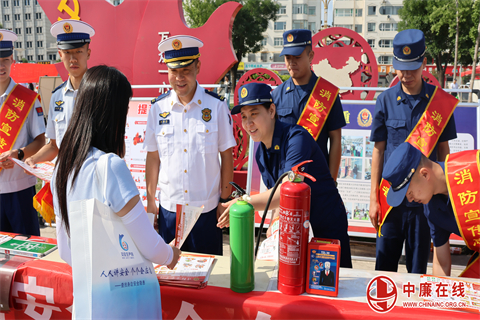 在活动现场,潞城大队提前谋划、精心组织,开展了内容新颖、形式多样的消防宣传活动,设立了消防宣传咨询服务台、消防宣传展板和器材展示等多个区域,吸引了大量群众驻足观看,宣传人员一边向围观群众发放《家庭消防安全知识手册》、《电动车使用手册》等消防安全宣传资料,一边认真地向围观群众讲解如何查找身边的火灾隐患,同时,耐心的向前来咨询的群众解答日常的消防安全问题。