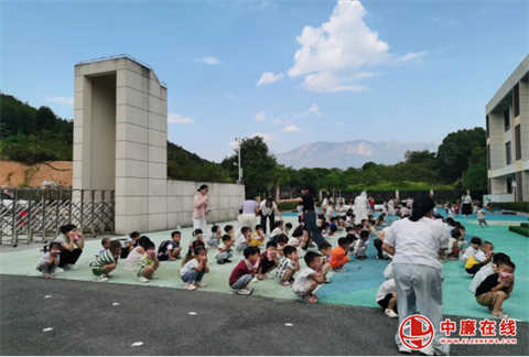 “用湿毛巾捂住口鼻、蹲下身子,有序撤离……”在大班教室里,老师赖结祯通过PPT的方式,给小朋友们详细讲解了火灾的危害、如何预防校园火灾、逃生技能、疏散演练流程等知识。清水乡志愿者通过有奖竞答的方式,在轻松愉快的氛围中强化了孩子们的安全意识。区消防大队冯金城则从随机应变、实事求是的角度,为孩子们补充了关键消防应急知识。
