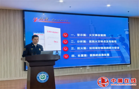 为进一步提升医院职工消防安全意识与应急处置能力,切实筑牢医疗场所安全屏障,10月23日,江西省上饶市广丰区总医院人民医院院区特邀区消防救援大队参谋张利来院开展消防安全专题培训。全院领导班子成员、中层副职以上干部及各科室代表共计400余人参加培训,会议由副院长刘建耀主持。
