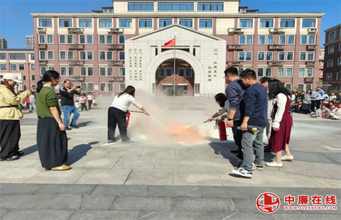 抵达安全区域后,各班班主任立即清点人数并上报演练总指挥,确保全体师生无一遗漏。华东师范大学弋阳实验学校党委委员、副校长葛永鑫现场示范了干粉灭火器的正确使用方法,邀请师生及食堂工作人员代表上台实操演练。大家严格遵循"提、拔、握、压"的操作要领,沉着冷静完成灭火模拟操作,切实将理论知识转化为实践技能。同时,负责人还讲解了日常校园火灾预防常识,重点强调教室用电安全、食堂燃气使用规范及杜绝违规用火等关键要点,进一步深化全体人员的消防安全认知。