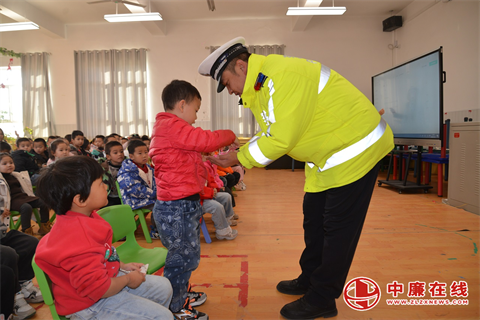 “小朋友,如果没有红绿灯,过马路要注意什么?”“乘坐爸爸妈妈的汽车,第一件事要做什么?”在热烈的互动问答环节,民警结合生活实际提出问题,孩子们争相举手、踊跃回答。每一声正确的回答,都会获得民警奖励的棒棒糖和真诚的鼓励,现场欢声笑语不断。对于孩子们充满童真的疑问,民警也俯下身耐心倾听,用最通俗易懂的语言一一解答,在轻松的对话中消除了孩子们对交通安全的疑惑。