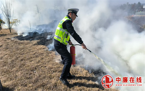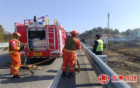 2026年1月11日上午,江西省公安厅交通管理总队高速交警六支队第六大队巡逻民警肖国光带领辅警陈建、谢昌龙,在莆炎高速广昌段执行巡逻任务时,发现广昌南收费站旁突发火灾。