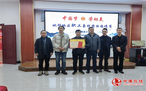 余干县总工会常务副主席吴日国为团体赛第二名颁奖