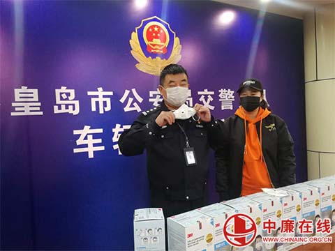 中廉在线2月26日讯:秦皇岛市车管所检验科辅警张誉檬得知复工复业需要个人严密防护的消息后,自己默默无闻,暗下决心,一定通过自己努力,让领导和同事们得到更好的防护和保障,通过爸爸的战友在北京疫情防控中心医疗物资销售公司的帮助,自掏腰包10000元购买了10箱,jB2626—2006KN95、3M口罩。