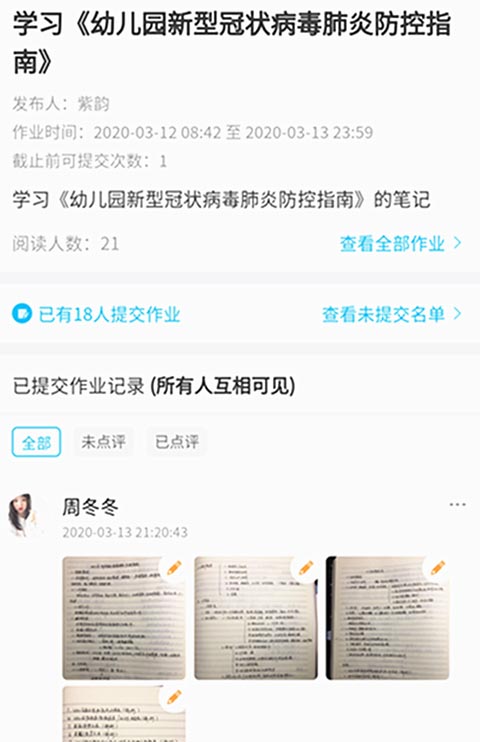 风雨同舟,披荆斩棘。做实践工作,强知识技能,3月13日大公镇古贲幼儿园全体教职工参加了《幼儿园新型冠状病毒防控指南》专题线上培训。老师们严格按照要求,充分利用多媒体通讯设备,完成了本次线上培训,在学习过程中认真做好笔记,并通过微信群积极发表培训心得体会。
