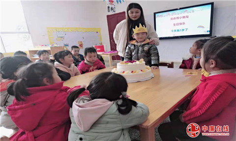 点蜡烛、切蛋糕,和父母一起过生日,对于大多数孩子来说,这是再平常不过的事了,但对留守儿童来说,这却是一种奢望。2021年3月16日,贵州省沿河县客田镇中心幼儿园中(1)班教室里,传出欢声笑语。掌声、祝福声,伴着温暖的生日快乐歌回荡在校园中。这是校领导班子和学校各班老师及留守儿童为我园田睿博留守儿童过生日,祝福他健康成长。留守儿童领导小组为过生日的孩子和留守儿童们致了生日祝福词并提出了两点希望: