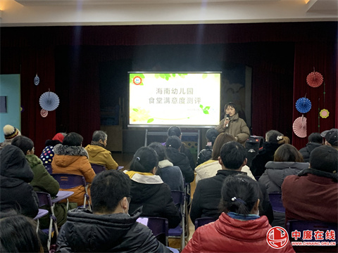 下午,各班按学号随机抽取的三分之一的家长代表们准时来园参加食堂满意度测评。在疫情防控的要求下,家长代表们严格进行扫码、测温、有序签到。为了体现测评工作的公平、公正,教办主办会计江峰、会计顾玉杰来园牵头实施。在吉霞介绍了幼儿园阳光食堂运行机制和测评活动的意义、目的,并详细解读了本次测评表,测评内容包括就餐秩序、卫生状况、饭菜分量、饭菜价格、饭菜品种、可口程度、服务态度及相关情况问答后,家长们结合平时的陪餐情况、每日与幼儿的交流情况,本着客观公正的原则,实事求是的态度,认真填写了测评表。经统计结果显示,所有家长对海南幼儿园食堂管理工作表示100%满意,并给予了高度评价。
