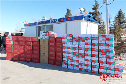 在2022年2月22日这一“最有爱的一天”,一辆满载爱心和温暖的货车开到了察右中旗东卡口处,将一箱箱慰问品送到了抗疫“蓝帐篷”前,送到了坚守在防疫一线的“大白”们手中。
