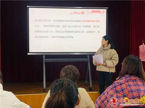 下午放学后,幼儿园组织全体教职工学习了《中华人民共和国长江保护法》,安保主任杨和琴对保护法进行了详细的解读,并鼓励广大教职工向家长宣传相关政策及法规,让长江大保护的理念更加深入人心,促进长江生态绿色发展。