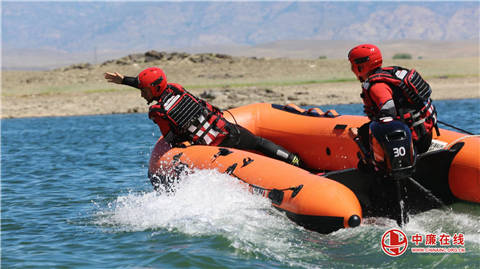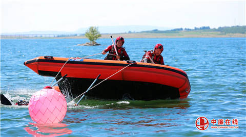经了解,今天比武队员将进行操艇绕标和翻船自救两个课目的比拼。在救援任务中,随着各种因素的影响,随时都会发生各种意外和突发状况,但作为一支专业的国家队和主力军,必须在任何情况下做到处事不惊,圆满完成救援任务。而翻船自救课目比武就是检验救援人员在陌生水域救援时遇到突发情况能否灵活自救、保全自我的一项比武。