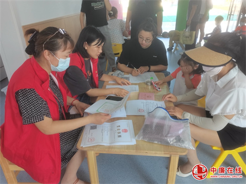 7月10日上午8点,韩洋幼儿园的现场复验工作有条不紊地进行着,根据《韩洋幼儿园疫情防控期间招生审验家长错峰来园流程图》,每一位错峰进园的家长都严格执行进门五部曲,疫情期间进门扫场所码、测体温、双手消毒并走指定通道,有序地进入等候区、初审区、复审区、咨询处,完成招生审核后自觉地及时离园。为了保证各个审核点的卫生安全性,每个点位上还配备了一名保育老师进行及时消毒,确保一生一审核一消毒。在各复验审核点,初审材料咨询、居住证刷卡验证、复审材料装袋、材料袋确认签字、信息汇总……现场招生审核工作进行地非常顺利。