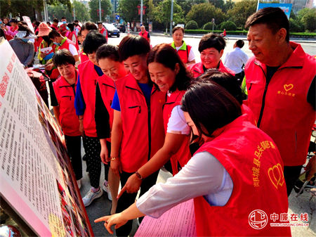 9月5日,第七个“中华慈善日”到来,山东省郯城县组织百名志愿者走上街头宣传慈善法规。