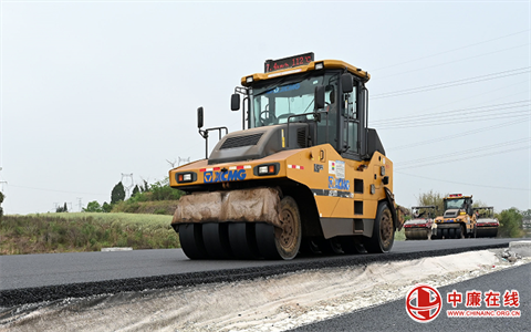 2023年4月13日,在内大高速四川省内江市东兴区境内的施工现场,路段已全面进入铺油阶段。