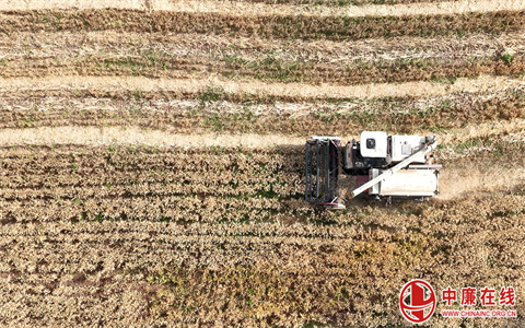 连日来,内江市东兴区石子镇万亩优质粮油园区风吹麦浪涌春潮,4600余亩小麦陆续成熟,丰收在望,当地专合社及时引入农机适时抢收,做到颗粒归仓。 (李建明 )