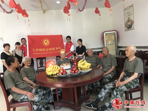 7月27日上午,冷涧社区七彩暖阳志愿者走进光荣院,给老兵们过生日。他们参加过淮海战役、解放战争、抗美援朝等战争,他们是民族英雄,是我们最亲爱的人。已是期颐之年的爷爷奶奶们精神矍铄,他们看到志愿者忙前忙后的场景,脸上露出了开心的笑容。听力不好的陶爷爷兴致很浓,开心的和大家讲他参军抗战的经历,给大家上了一堂真实、生动的爱国主义教育课。