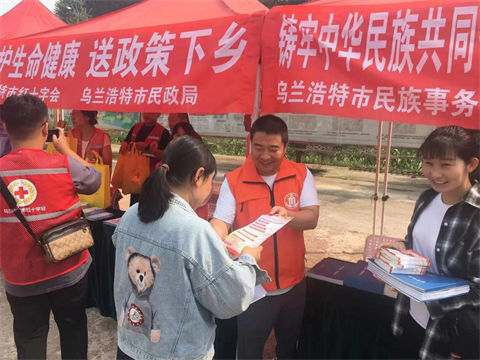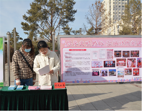 在“三八维权周”、文化科技卫生“三下乡”、廉洁文化进社区主题展演等各类活动中,乌兰浩特市民政局通过卡通人偶、周边产品吸引群众,通过互动方式发放婚俗改革倡议书、科普婚俗改革内容,引导群众签订婚俗改革承诺书,在婚俗改革文化展板上收集群众留言意见。通过线上线下、实体虚拟同步推广方式,不断创新婚俗改革宣传载体。截止目前,全市共开展“逐梦乡村·我们的舞台”“益·身边人”等移风易俗宣讲活动130余场次。围绕婚俗、家庭、女性开展志愿服务活动110场,入户宣传28700多人次,发放张贴婚俗家庭、婚姻改革相关公益广告14800张。在学习强国、中国网、光明日报、央广网、内蒙古新闻等区级以上媒体刊发婚俗改革稿件22篇,群众阅读点击量达到3.56万人次。