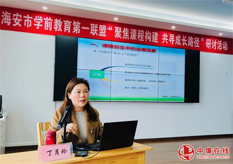 海安市第一实验幼儿园副园长秦小妹分享了幼儿园园本课程建设实践探究的经验,她以独特的视角,通过具体详实的案例,让与会老师受益匪浅。