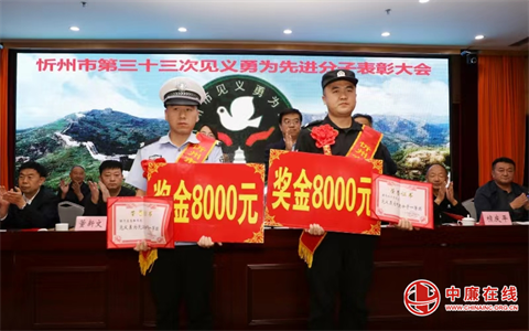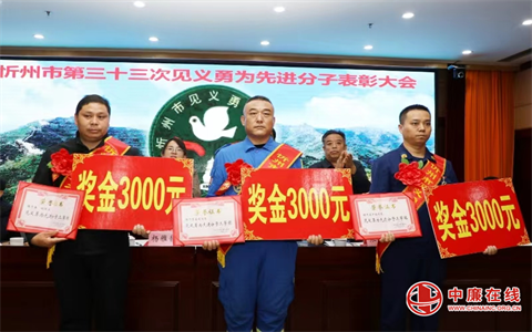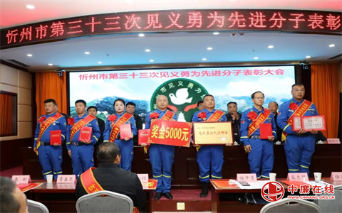 大会由忻州市见义勇为协会副会长、秘书长赵茂良主持。常务副会长檀庆平宣读了《表彰决定》;副会长陈海平宣读了见义勇为先进事迹;常务副会长洪庆刚、副会长李梦林、贾荐清组织进行了颁奖;会上,对任午青、高志强等7名先进个人,忻州市公安局交警支队直属二大队、原平市蓝天救援队等5个先进群体23人,共计30余人进行隆重表彰;受表彰先进分子任岩松代表全体获奖人员发表感言。