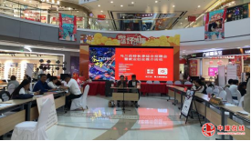 活动现场,每家社会组织都将自家的招聘宣传展架摆在桌前展示,场地中央同时设有线上直播,同步播放线下场地的现场情况,活动吸引了许多商场内逛街的游客,每一个摊位前门庭若市,不断有感兴趣的游客前来与负责招聘的工作人员进行咨询岗位情况,同时在活动线上直播间内也有求职者通过电话连线来了解咨询,双方也互留了联系方式。
