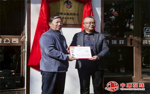 邯郸市航拍协会名誉会长张双来为武安办事处安雪佳颁发邯郸市航拍协会武安办事处副主任聘书
