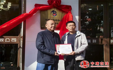 邯郸市航拍协会书记苗绪见为武安办事处李红星颁发邯郸市航拍协会武安办事处副主任聘书