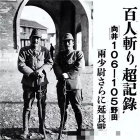 1937年11月底至12月10日,在上海向南京进攻途中直至南京大屠杀前夕,两名日本军官向井敏明少尉和野田毅少尉以谁先杀满100个中国人为胜的竞赛最后向井敏明以斩杀106人,平手于斩杀105人的野田毅。