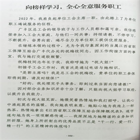 近日,江西省职工保障互助会在全省举办首届“互助互爱,温暖前行”征文大赛和故事征集活动。上饶市广丰区职工郭学福参赛作品《向榜样学习,全心全意服务职工》在全省165篇作品中脱颖而出,获得优秀奖。(黄小凡)