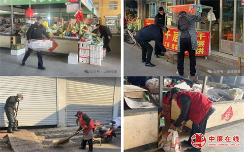 ▼山城街道党工委书记张明武到山亭农村大集、抱犊崮路、商贸城督导国家卫生城市建设成果巩固工作。山城街道党工委副书记、办事处主任王国栋,山城街道党工委副书记王瑞,山城街道办事处副主任陆霞参加。