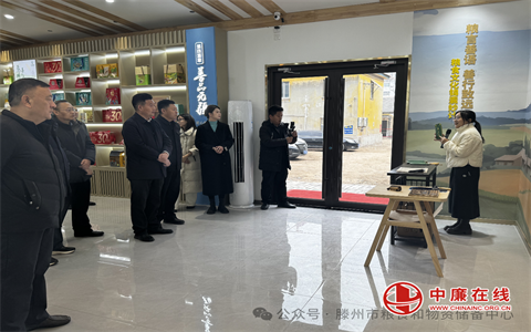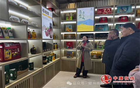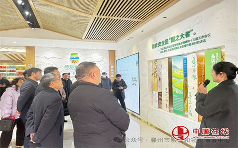随后,老干部们在讲解员的引导下进入馆内。在“天成滕粮”篇章,他们深入了解品牌培育历程、近期亮点工作以及独具特色的文创产品,对“滕粮善品”的品牌内涵有了更全面的认识。