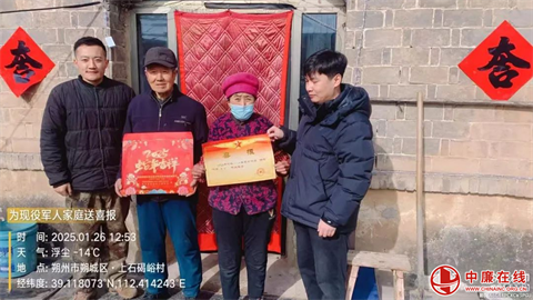 为弘扬拥军优属光荣传统,营造“一人参军、全家光荣”的浓厚氛围,近日,山西省朔州市朔城区沙塄河乡退役军人服务站为荣获2024年“四有”优秀士兵家属送上了喜报。
