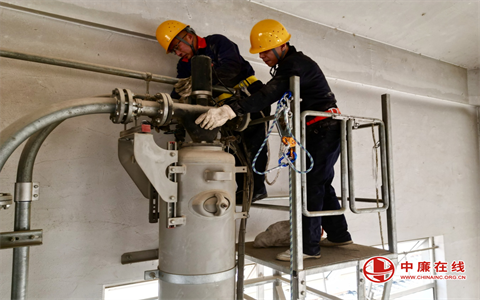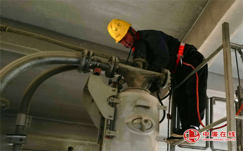 “巴掌大的夹管阀,看着小,实则不好更换,作业的位置离检修平台有点远,要伸出半个身子,塔体与墙之间的空间有限,平台面积又小,作业时身体只能保持一个姿势,不方便多方位用力。” 经过1个小时的奋战,张琳一组率先完成了一个砂塔夹管阀更换。