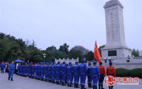 上午8时,宿州市烈士陵园内松柏苍翠、庄严肃穆,仿佛在静静诉说着往昔的峥嵘岁月。宿州蓝天救援队队员身着统一队服,身姿挺拔、神情肃穆,整齐列队于革命烈士纪念碑前。