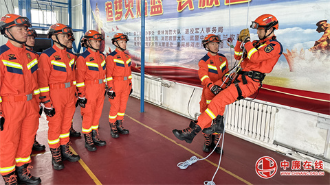 绳索理论夯基础。大队队始终把绳索救援技术作为应急救援必备技能,聚焦“扭住关键、全面提升”的抓训导向,扎实推进绳索救援训练。根据参训指战员绳索技术基础参差不齐的实际,划分小组、区分内容,采取理论讲解与实践操作相结合的方式,进行专业细致地教学。