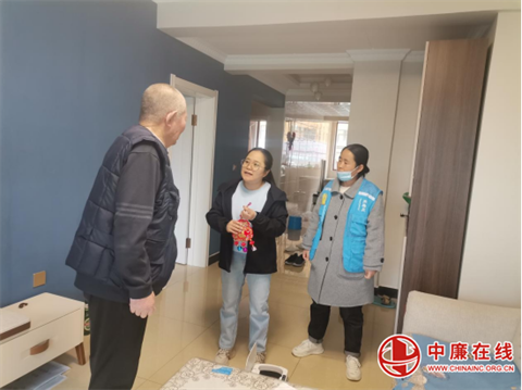 党员干部、两委成员和网格员入户为辖区内独居、高龄等特殊老人家中窗帘悬挂红色福袋。韩飞 摄