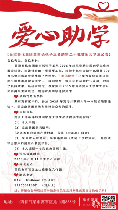 8月17日,山西省吕梁泰化集团董事长张子玉对2025年拟资助贫困大学生家庭进行了实地走访调查。集团顾问侯德虎、董事长助理张国生及往届受助的23名大学生一同参加了走访。