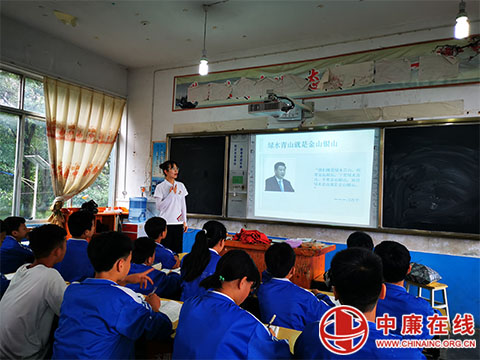 中廉在线6月26日讯:为进一步引导全社会树立和践行“绿水青山就是金山银山”的理念,6月18日,贵州大学研究生支教团在支教服务地开展以“绿色环保,从我做起”的环保知识进课堂活动。研支团梁耀文、苟仁涛老师担任主讲人。