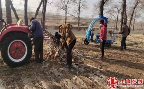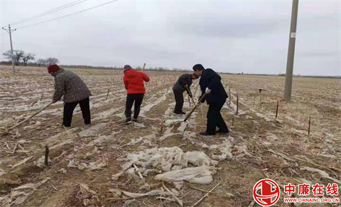 村民正在捡拾废旧地膜