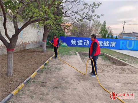 4月1日下午,陕西省渭南市合阳县路井镇孟庄九年制学校在学校党支部书记、校长车红星的组织带领下,全体党员同志开展“清除杂草 植树种花 美化校园”活动。