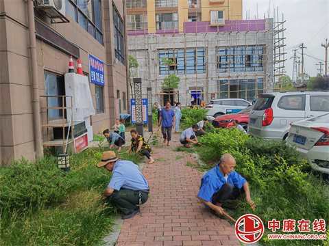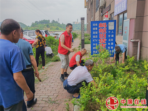 6月8日,贵州省三穗县文笔街道将军府移民小区以“我为群众办实事”实践活动为契机,以第一书记率队,推行党支部带动骨干党员、骨干党员带动党小组、党小组带动群众的“三带动”工作机制,开展“除草行动”美化小区家园环境。(杨杰)