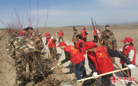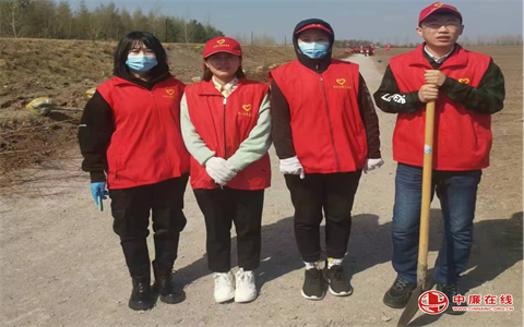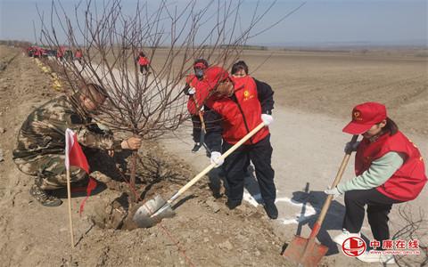 植树现场,党旗飘扬。党员干部充分发挥模范带头作用,栽植过程严把扶苗、培土、踩实、浇灌等关口,做到苗正土实,确保栽一棵、活一棵,植一片、绿一片。植树现场,身穿红马甲的党员志愿者个个热情洋溢、干劲十足,大家三两成组,互相交流,分工协作,配合默契,每一步都做到认真细致,井然有序。“志愿红”与“植树绿”相互交融,现场呈现出一片热火朝天的劳动景象,洋溢着团结协作、昂扬向上的浓厚氛围。