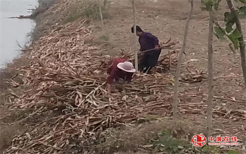 漆园街道旭光村勤劳的村民在河边沟边坡地种植农作物,也留下了大量的秸秆,存在了一定的污染隐患。为消除隐患,漆园街道旭光村的“河长”组织党员志愿者、公益岗对辖区内的河沟边的遗留秸秆采用人工+机械的方式进行清运,这也是积极响应了“绿水青山”的环保理念。