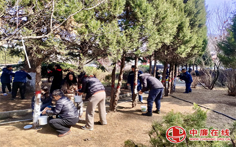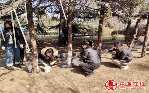 为了深入贯彻落实习近平总书记“绿水青山就是金山银山”的理念, 增强群众保护环境爱护树木的环保意识,防止虫害滋生破坏树木。3月14日,陕西崔家沟能源有限公司环保科和财务部党支部共同组织党员、群众开展矿区“描红刷白护绿”公益活动。