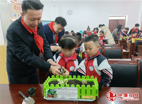 活动中张玲老师为学生们详细讲解植树节的由来,提高了学生们的环保思想认识,使学生们了解花草树木对地球的重要,认识到绿色与个人、学校、家庭和社会息息相关,激发师生共同参与绿色行动,保护美丽家园行动中来,营造播种绿色,播撒文明的校园。