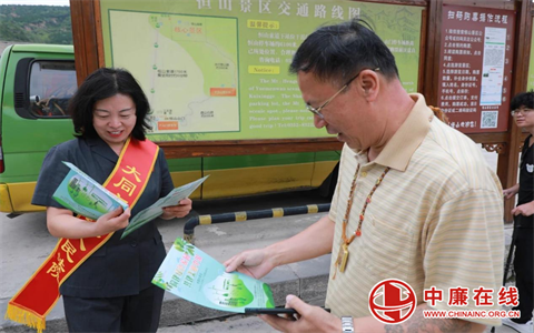 为激发全民保护环境的自觉性和行动力,在“8.15”全国生态日,山西省大同市中级人民法院联合浑源县人民法院携手走进风景秀丽的恒山风景区,开展了一场别开生面的环境保护法治宣传活动。市中级人民法院环境资源审判庭庭长王琴,浑源县人民法院党组副书记、常务副院长赵峰参加活动。